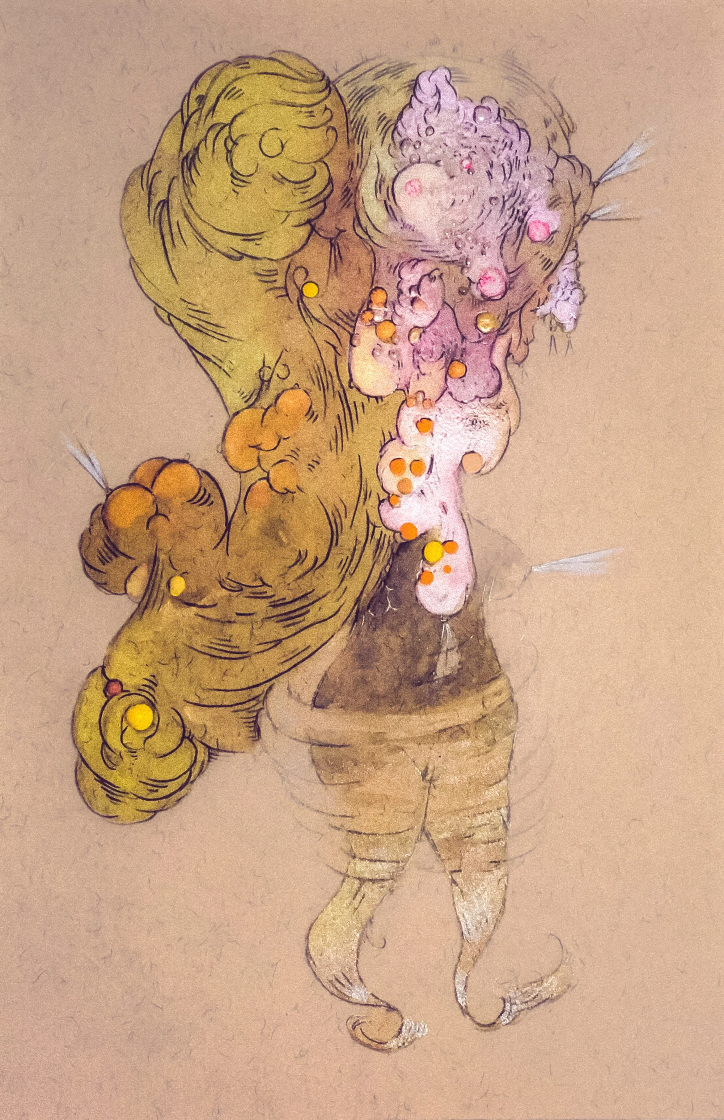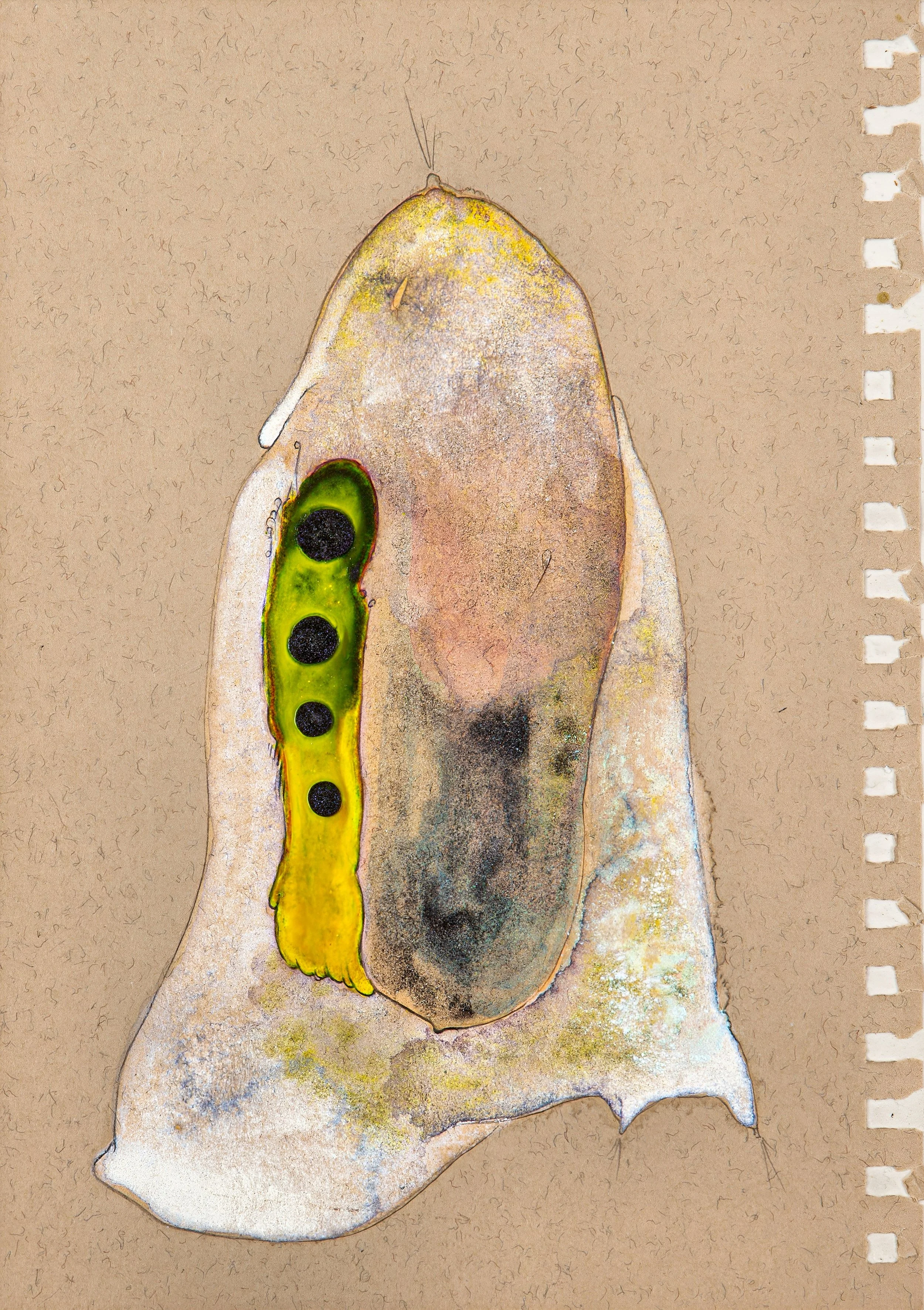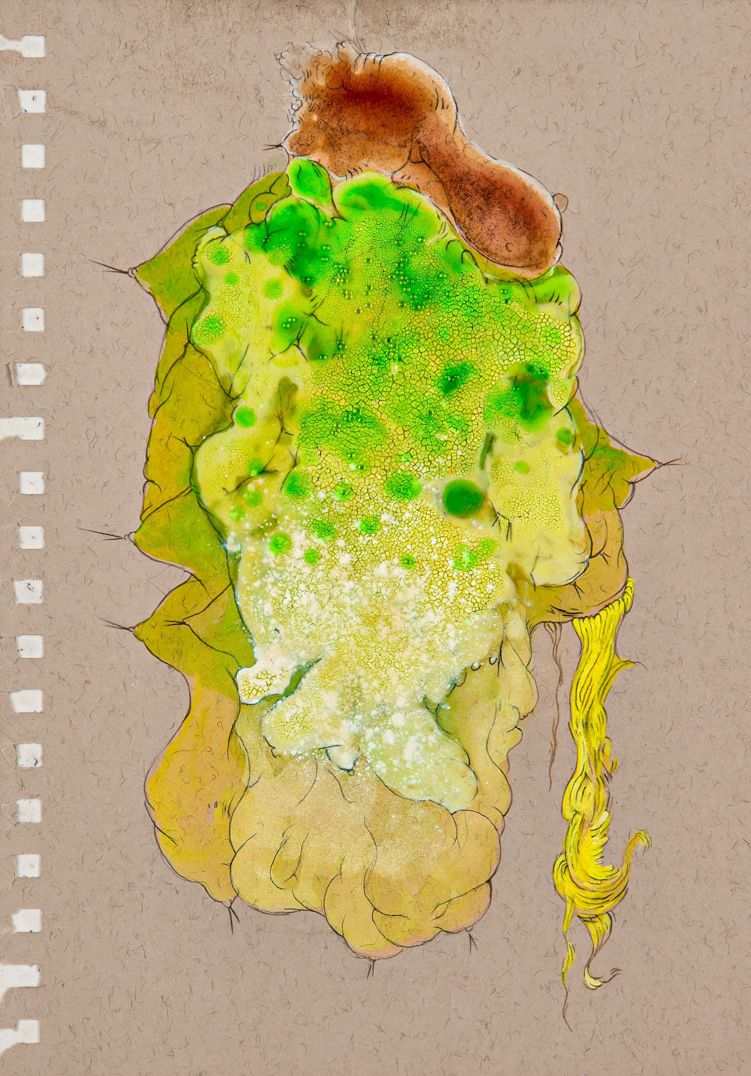 Propyl paraben cum flava volutpat, watercolor with Kremer pigments on recycled paper