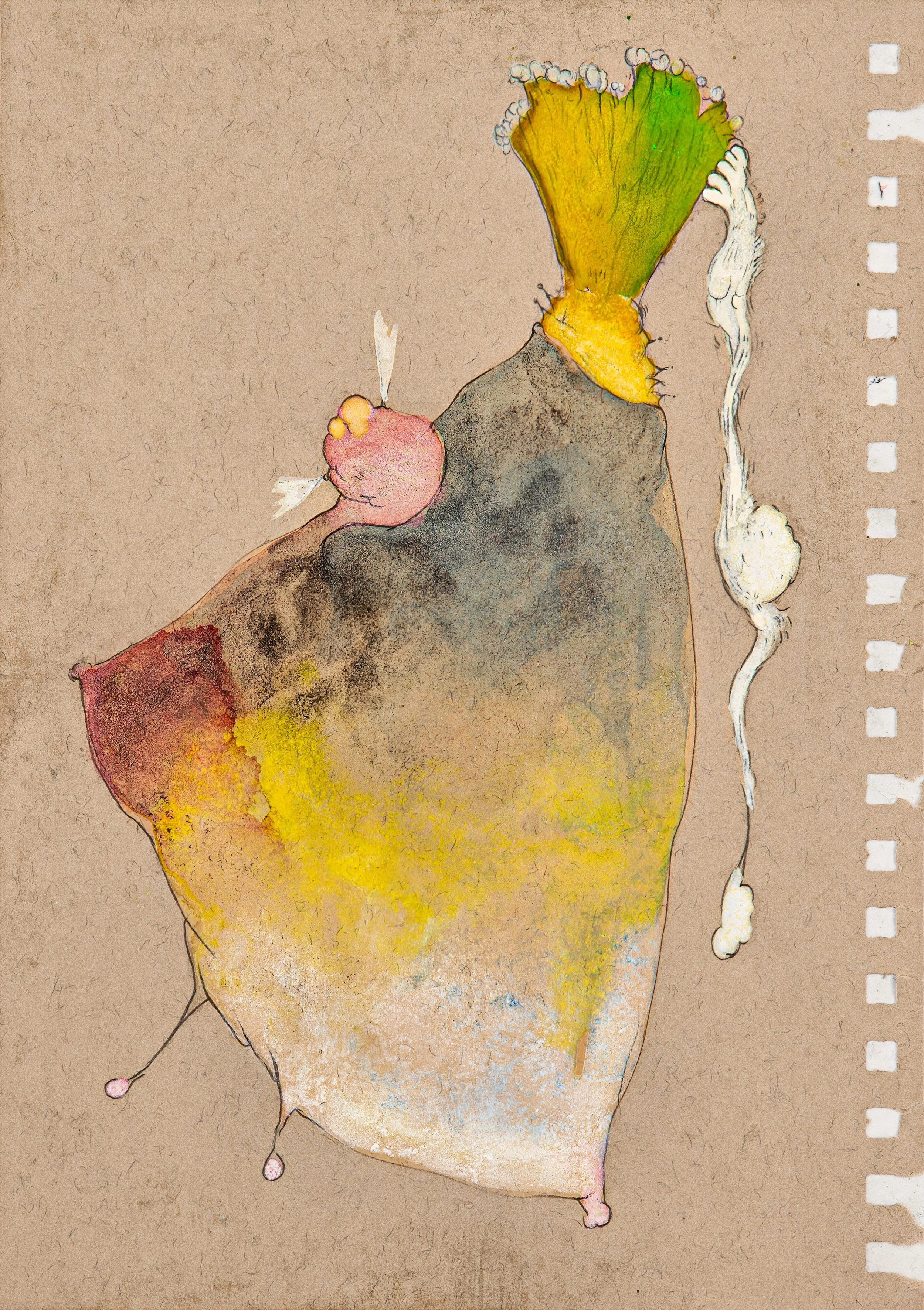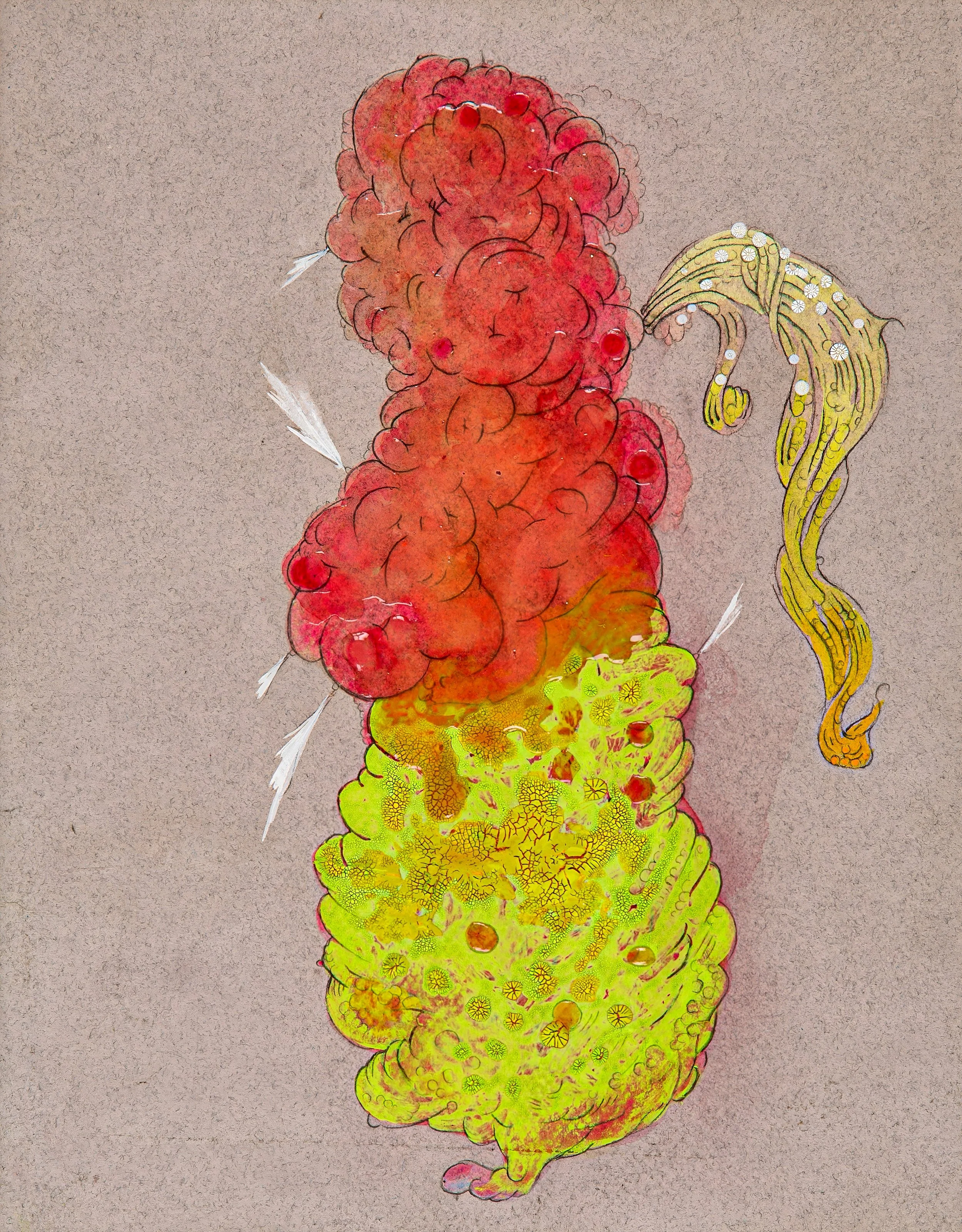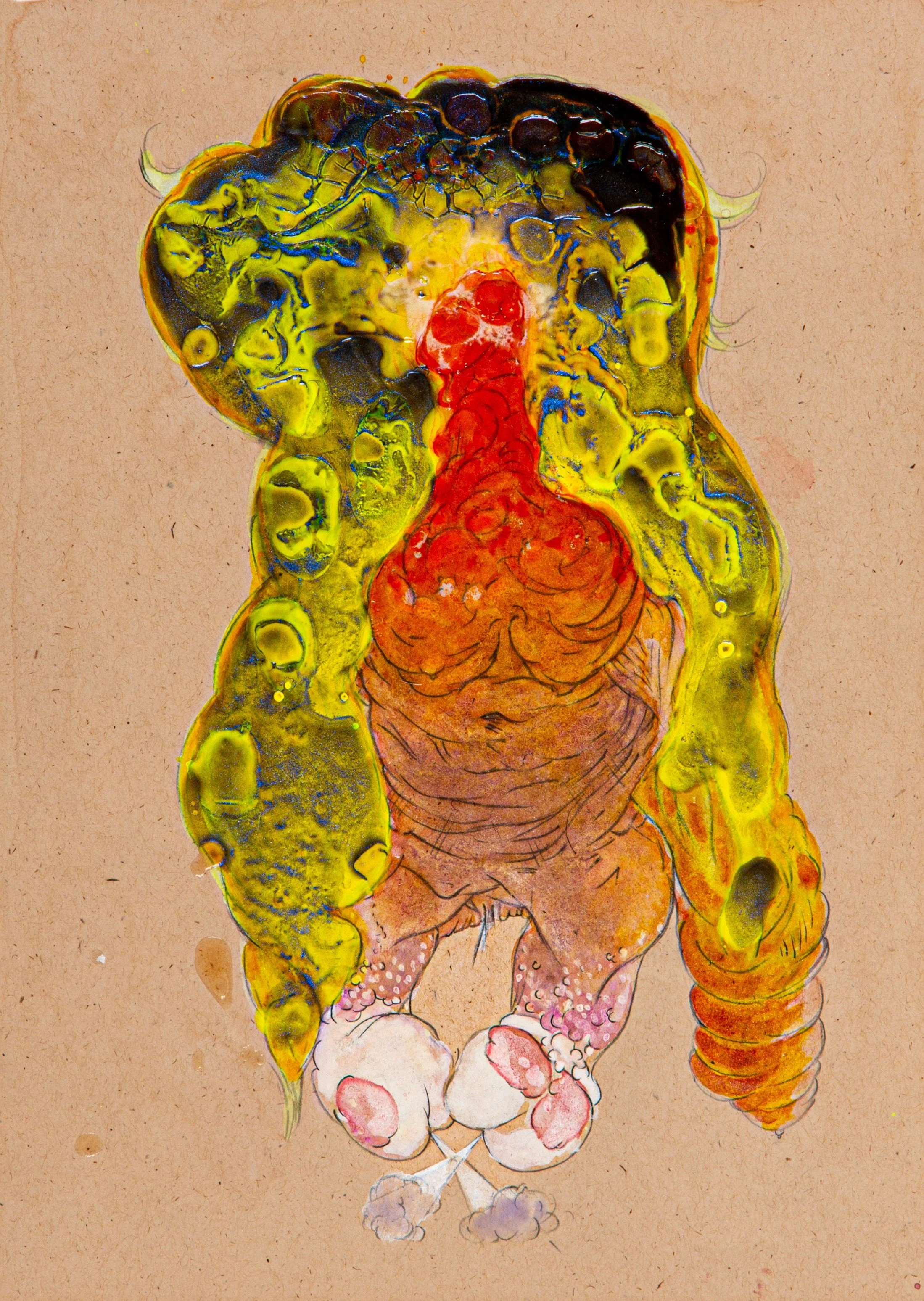 Propyl paraben cum flava volutpat, watercolor with Kremer pigments on recycled paper