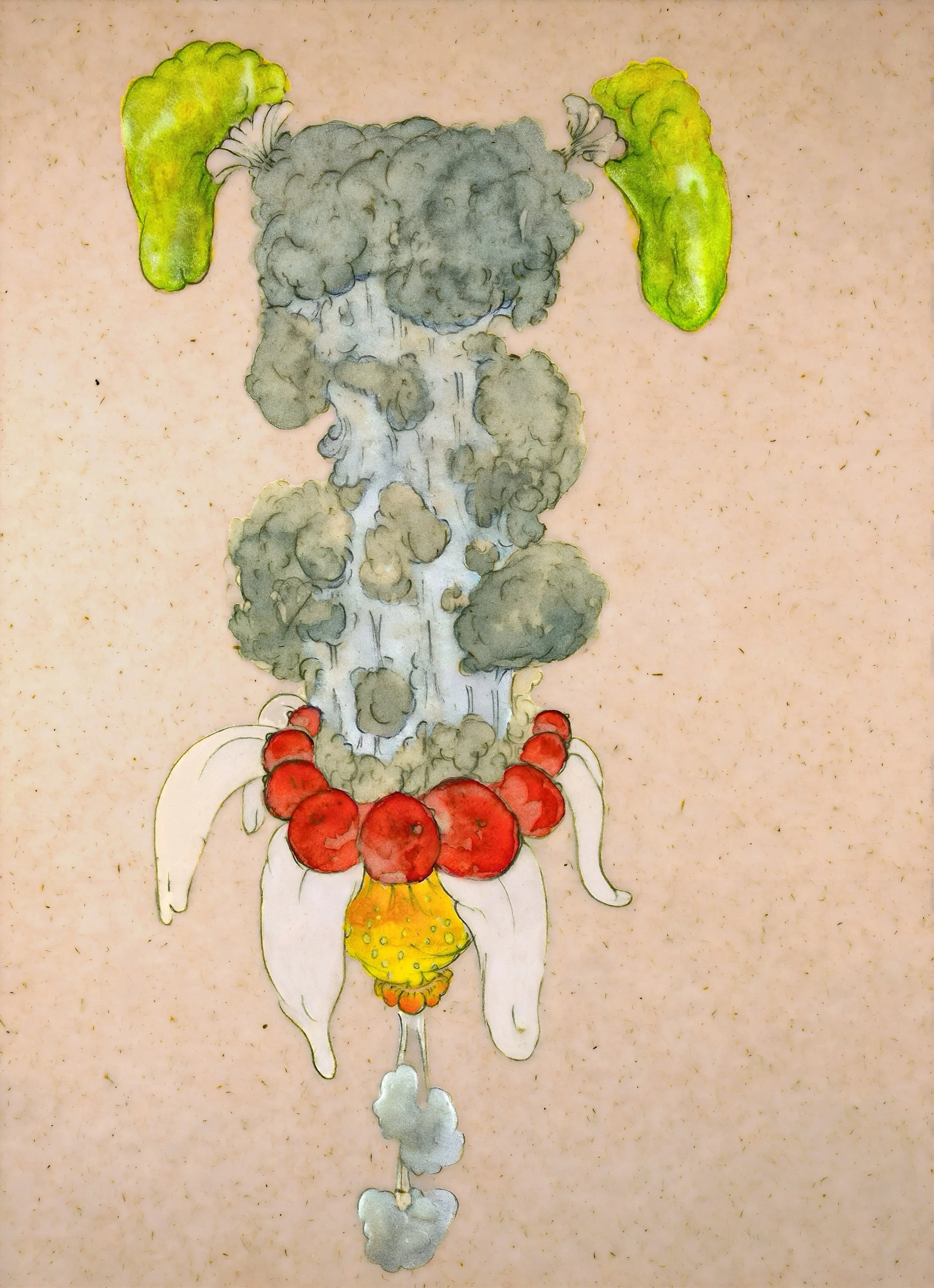 Tentalope, watercolor with Kremer pigments on recycled paper