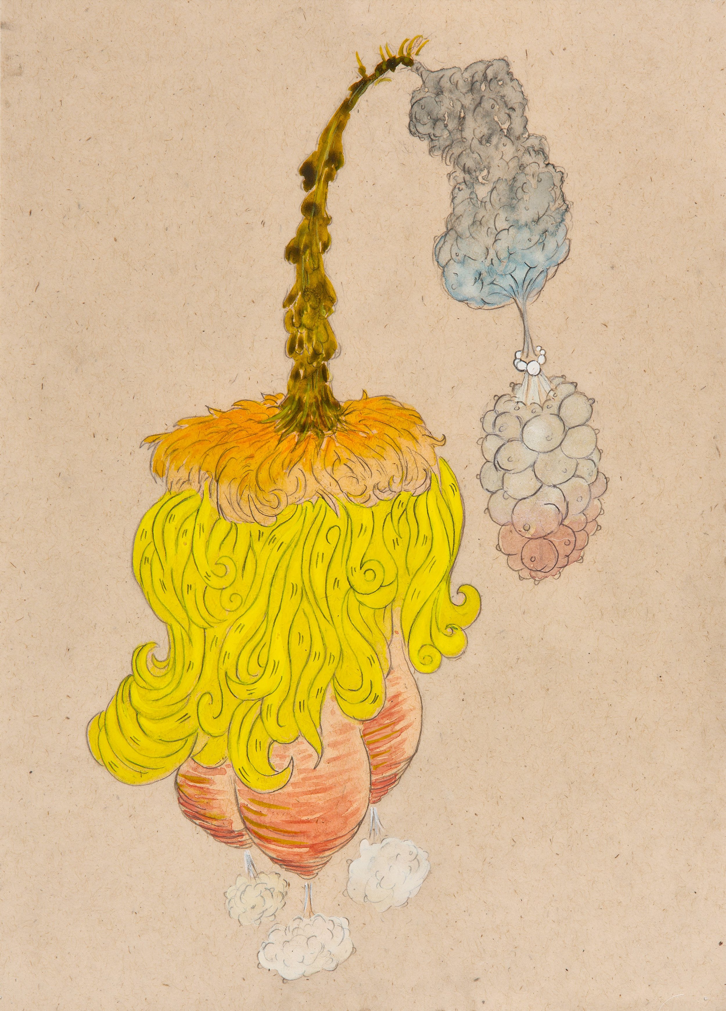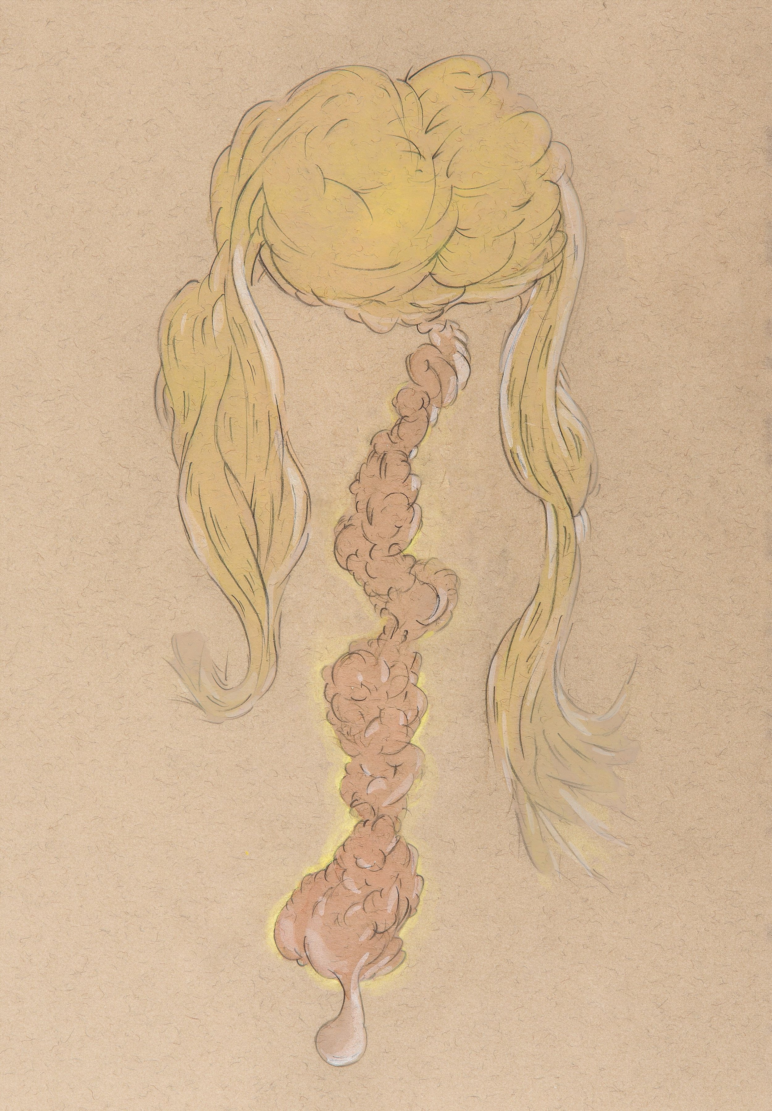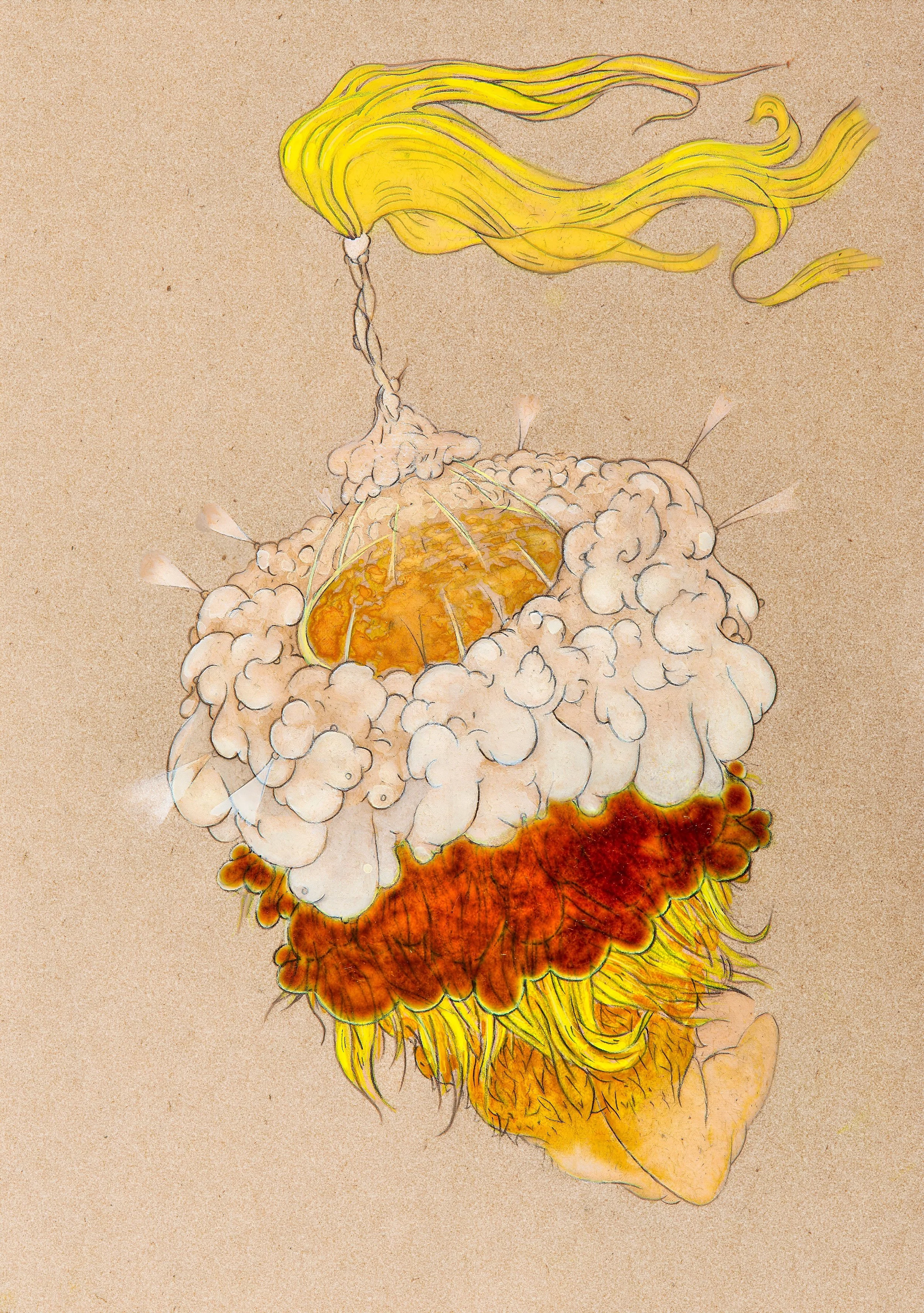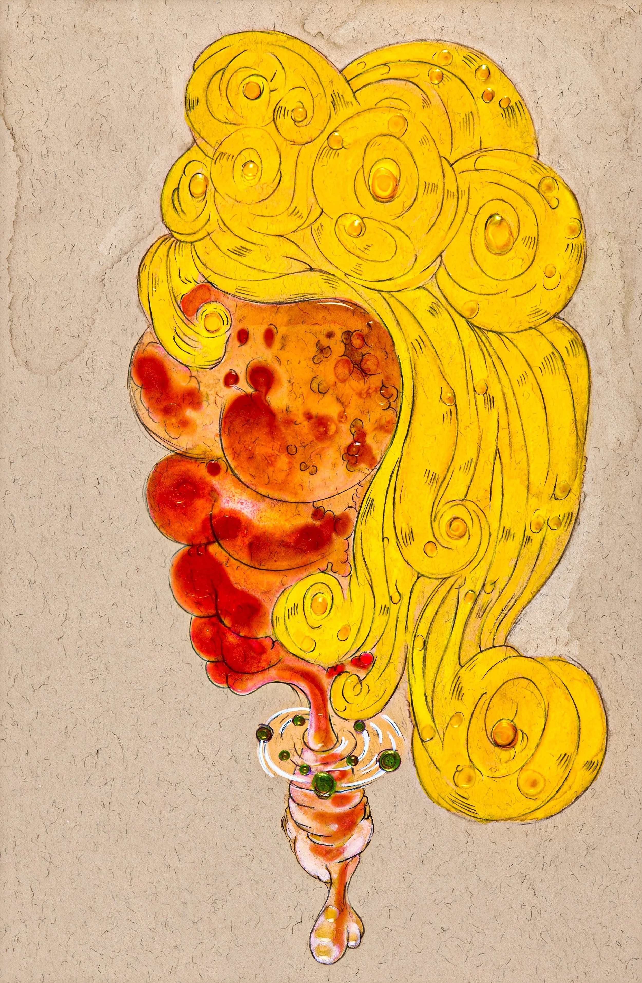 Lacteum cerebrum cum longa flava comas, watercolor with Kremer pigments on recycled paper