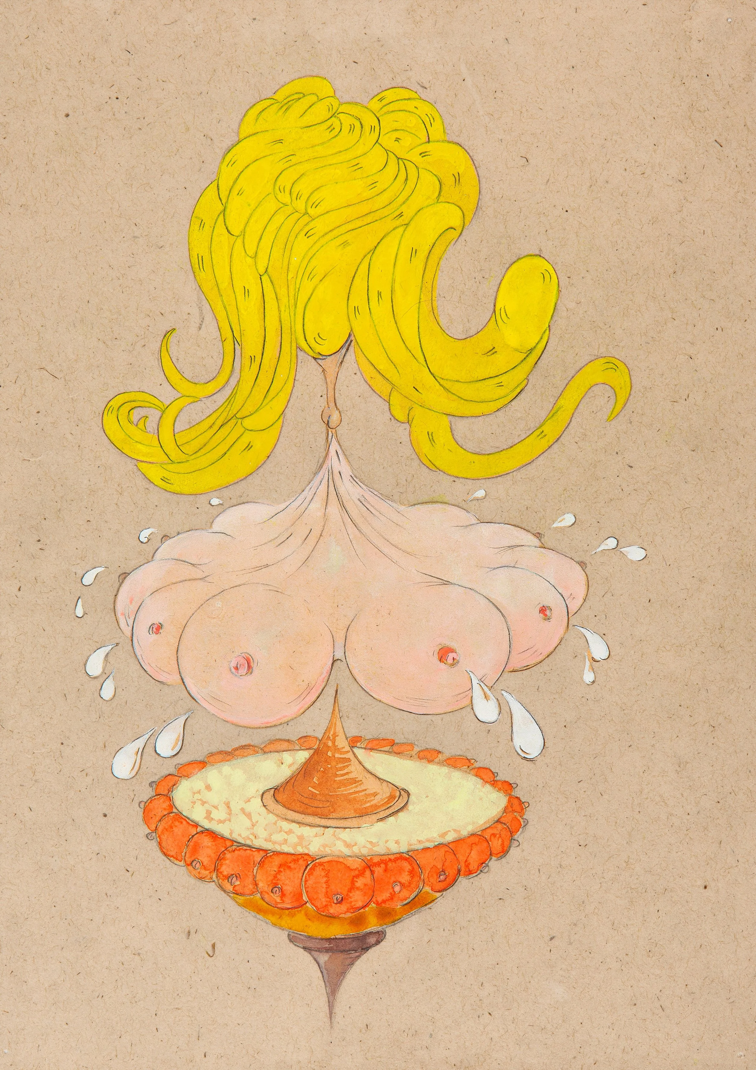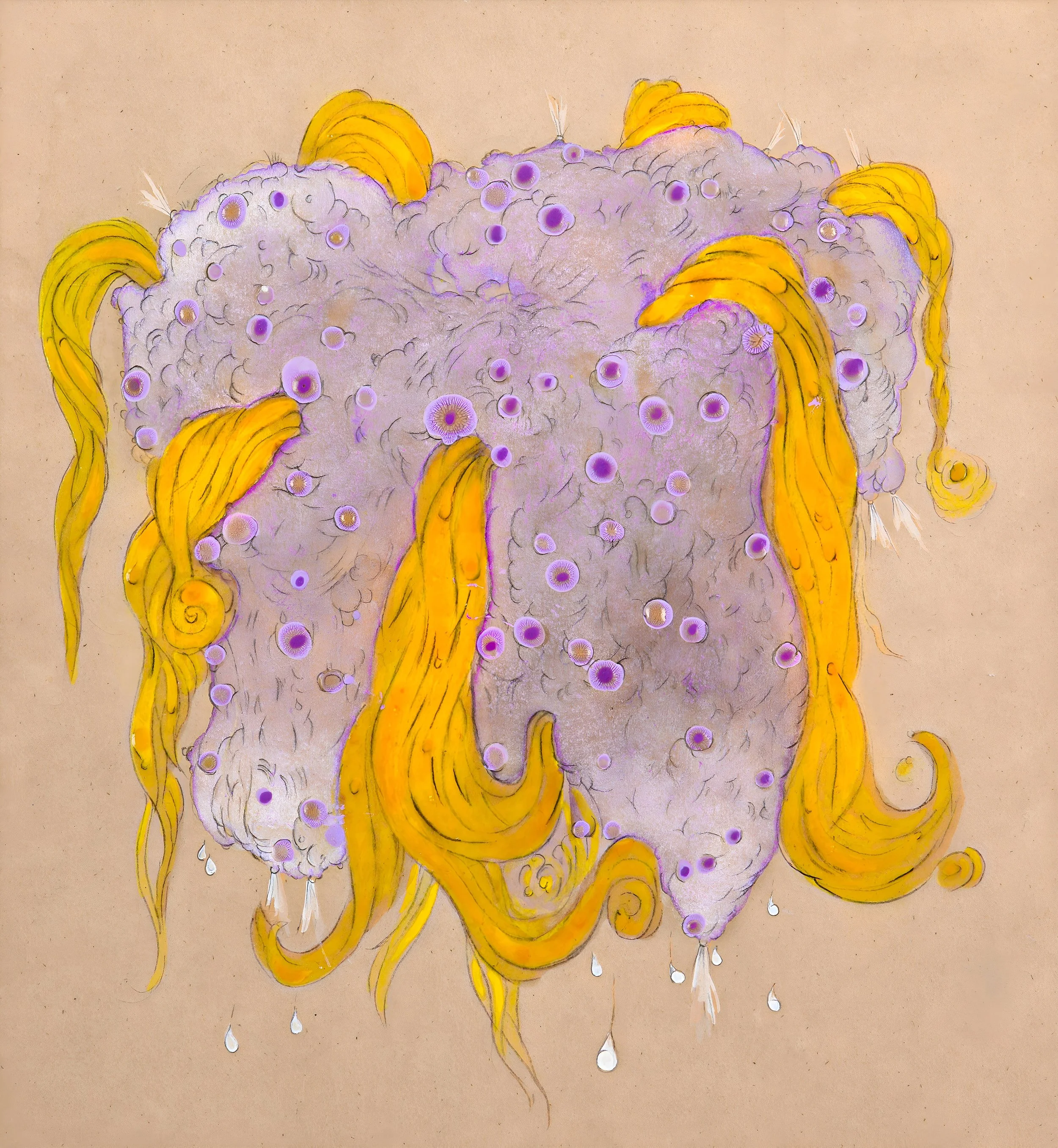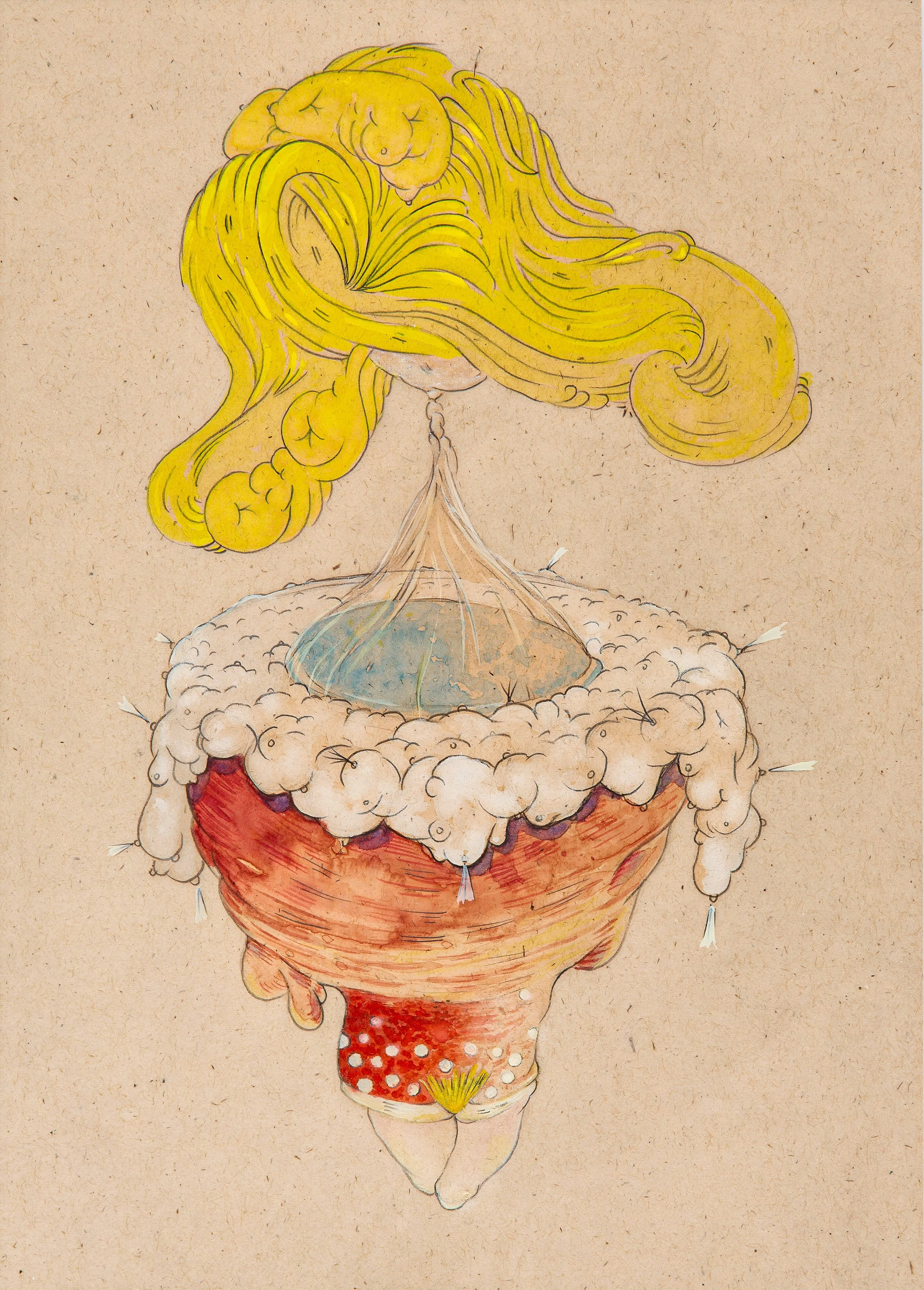 Lacteum cerebrum cum longa flava comas, watercolor with Kremer pigments on recycled paper