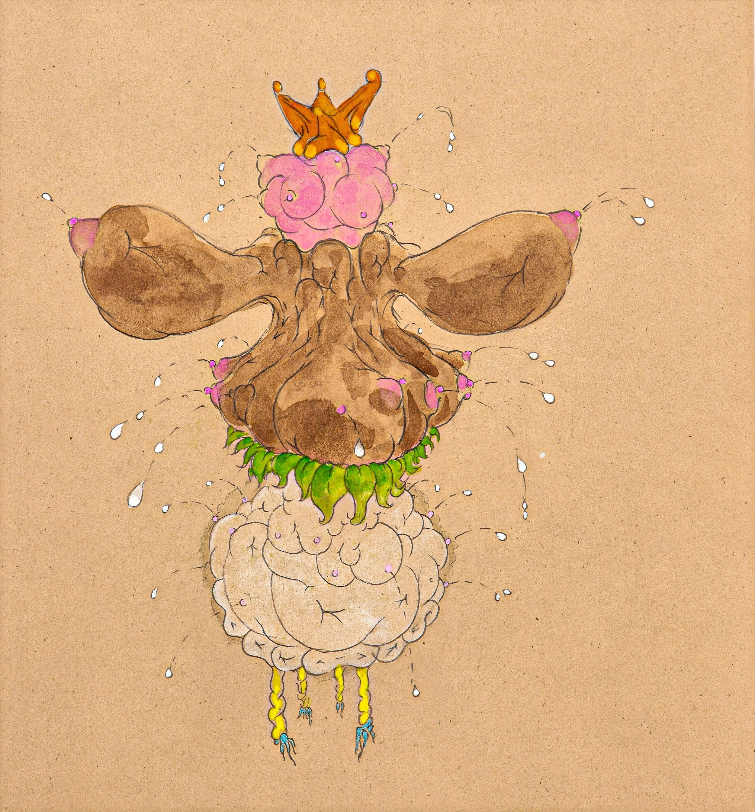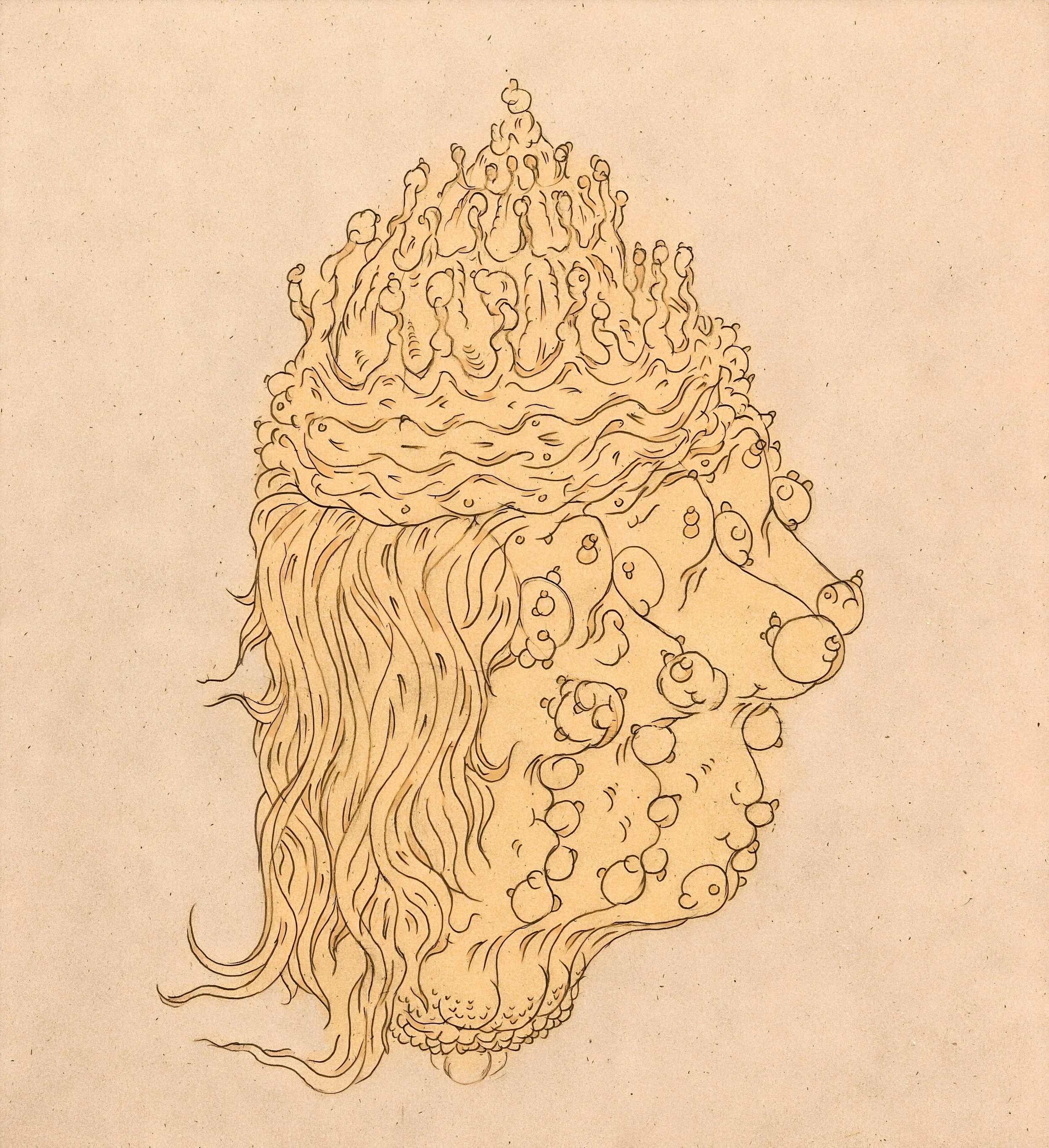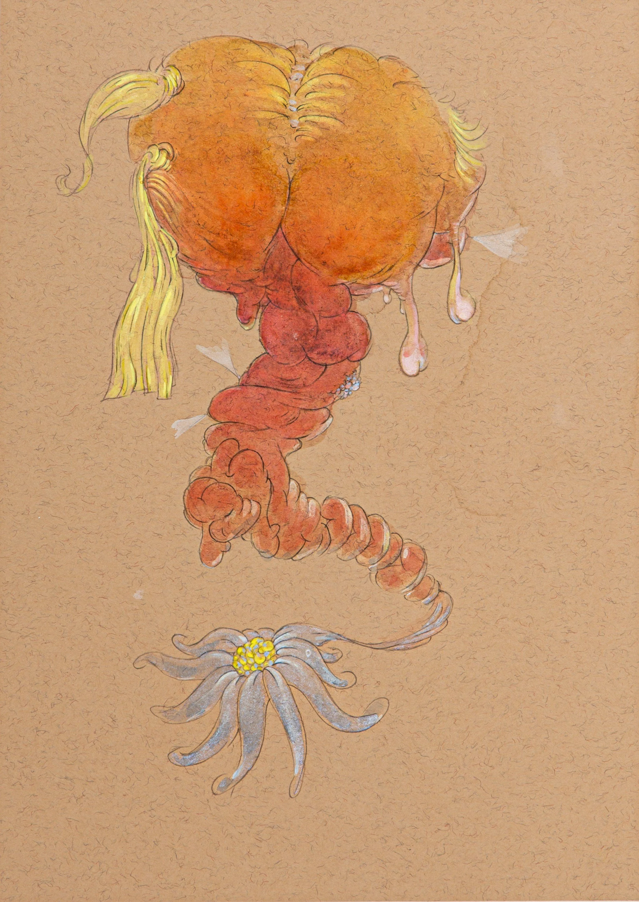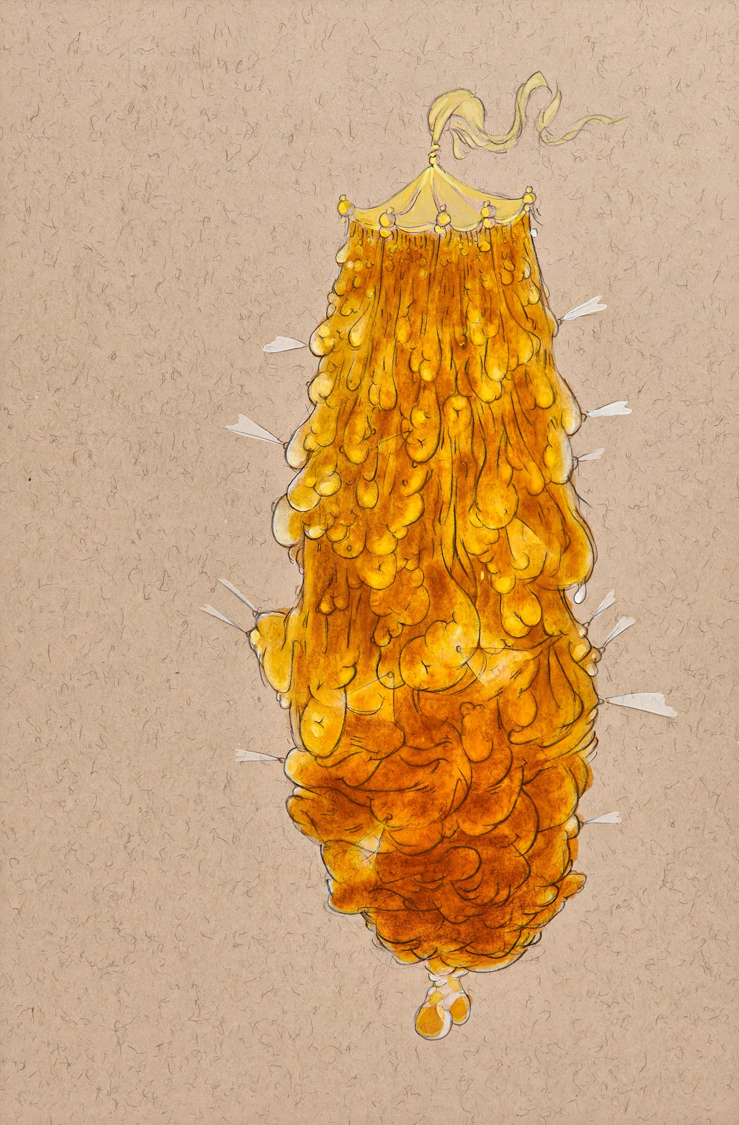 Lacteum cerebrum cum longa flava comas, watercolor with Kremer pigments on recycled paper