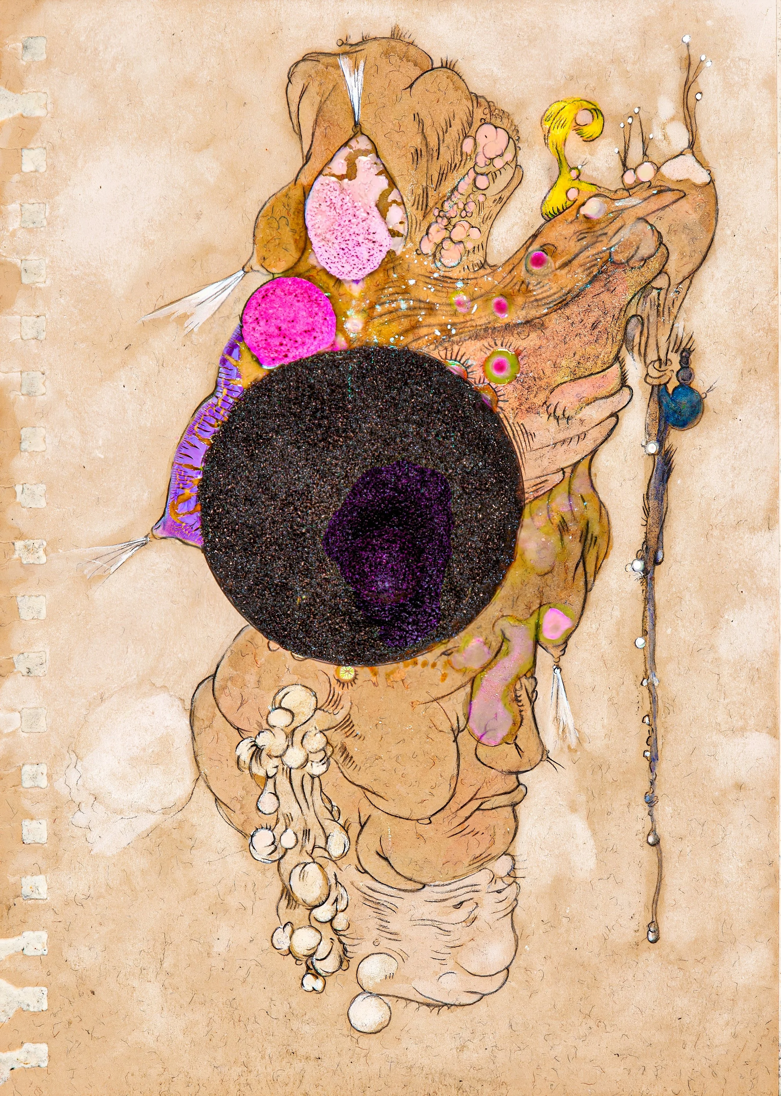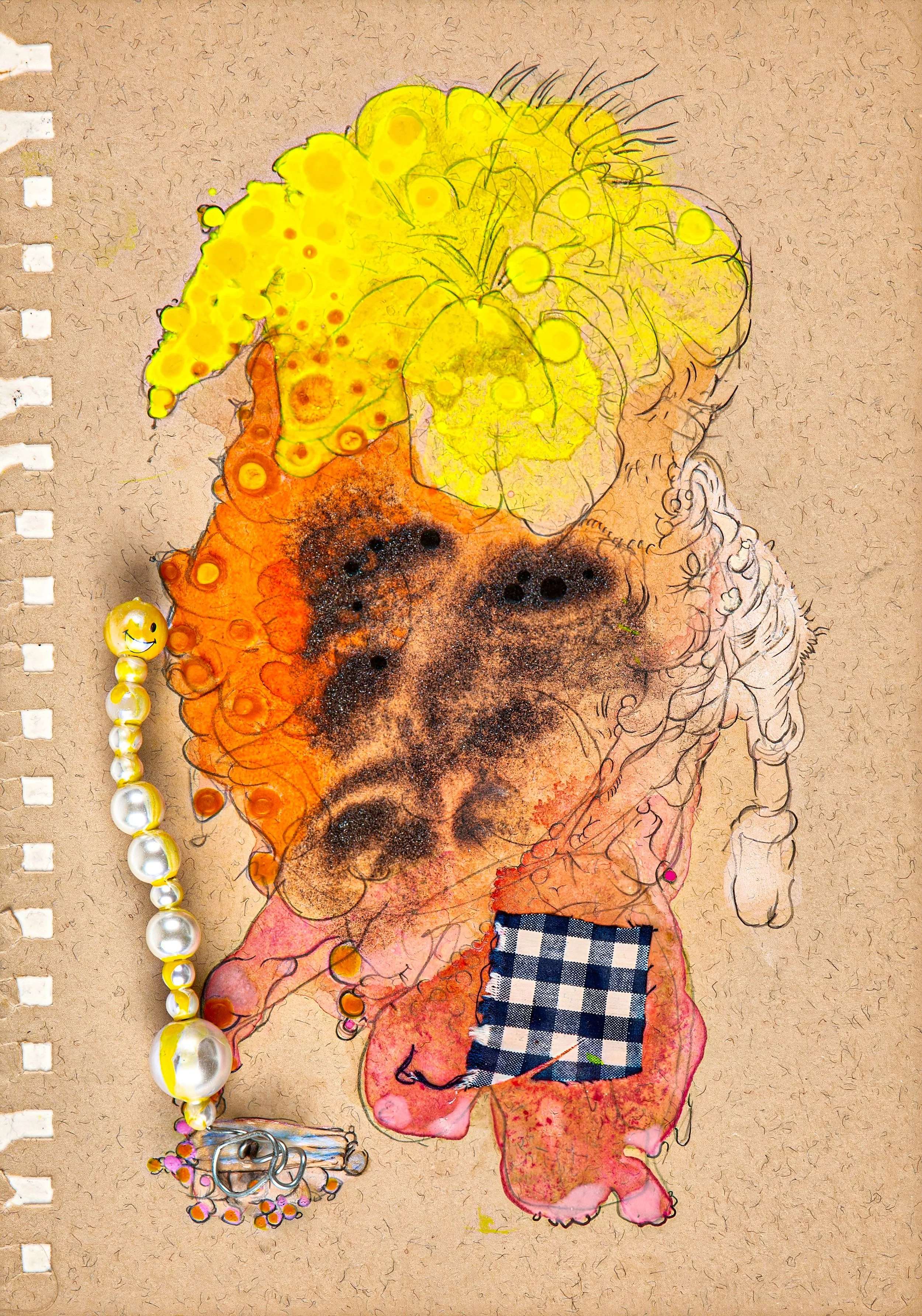 Doris, watercolor with Kremer pigments on recycled paper, mixed media