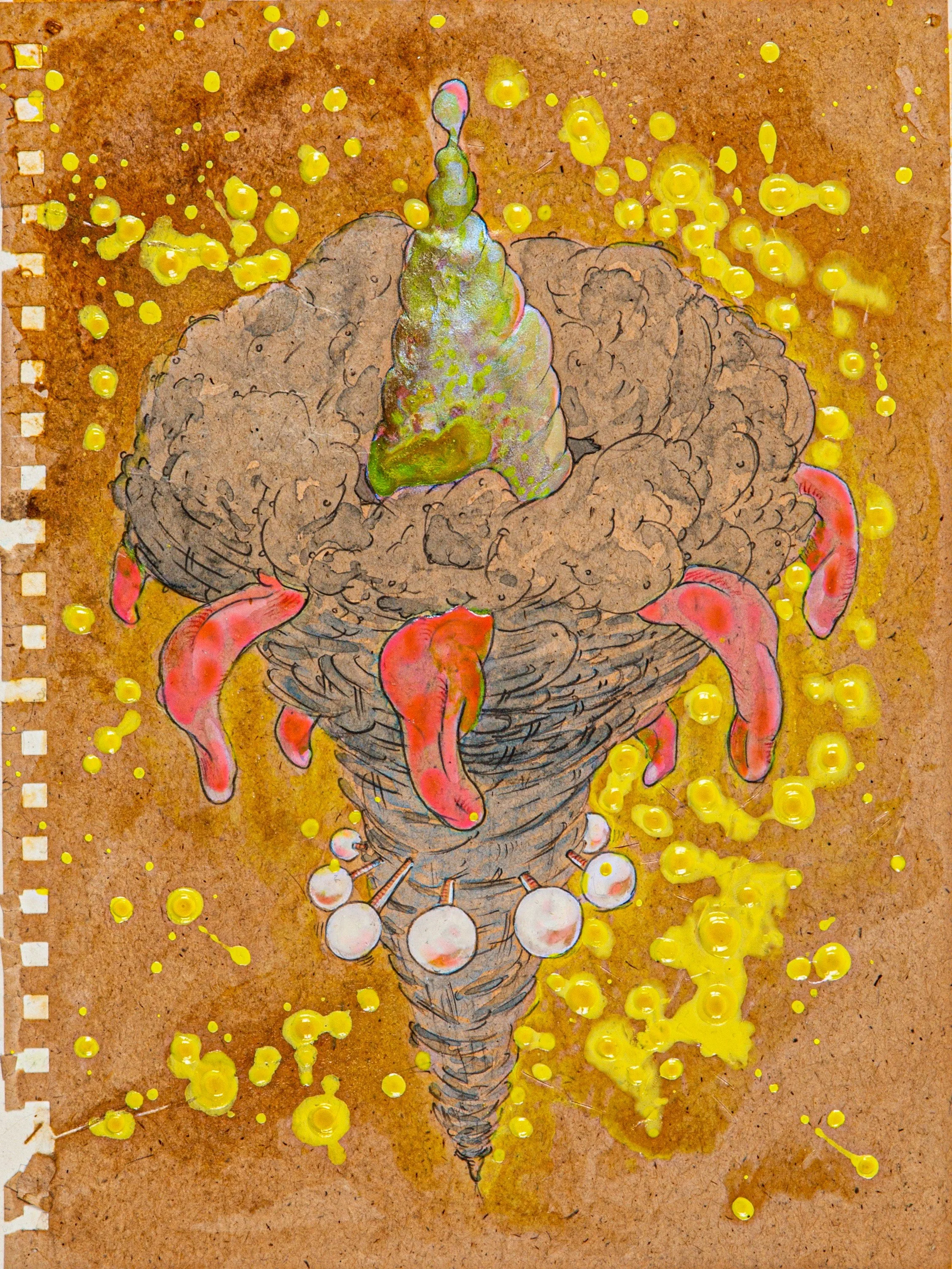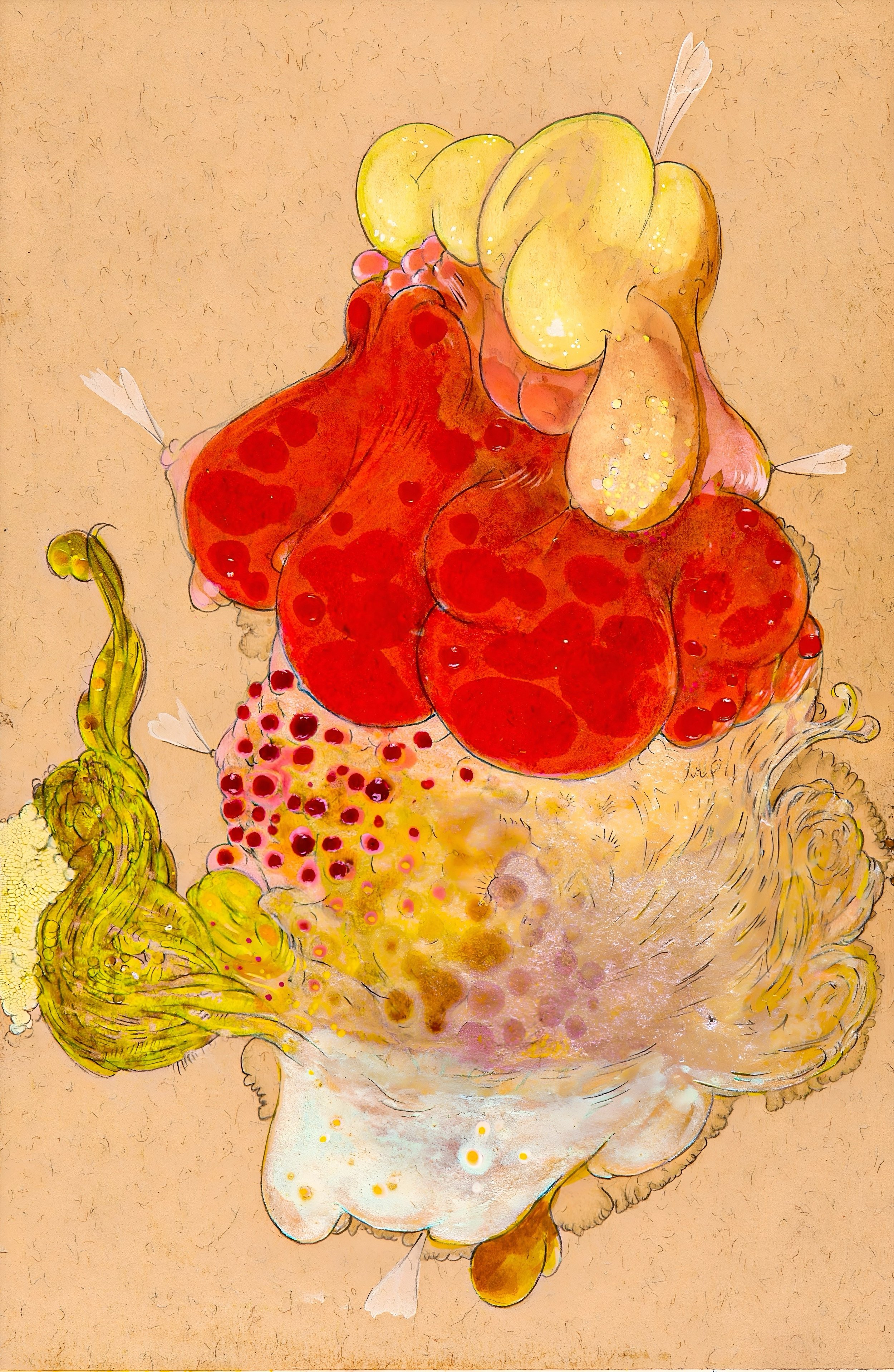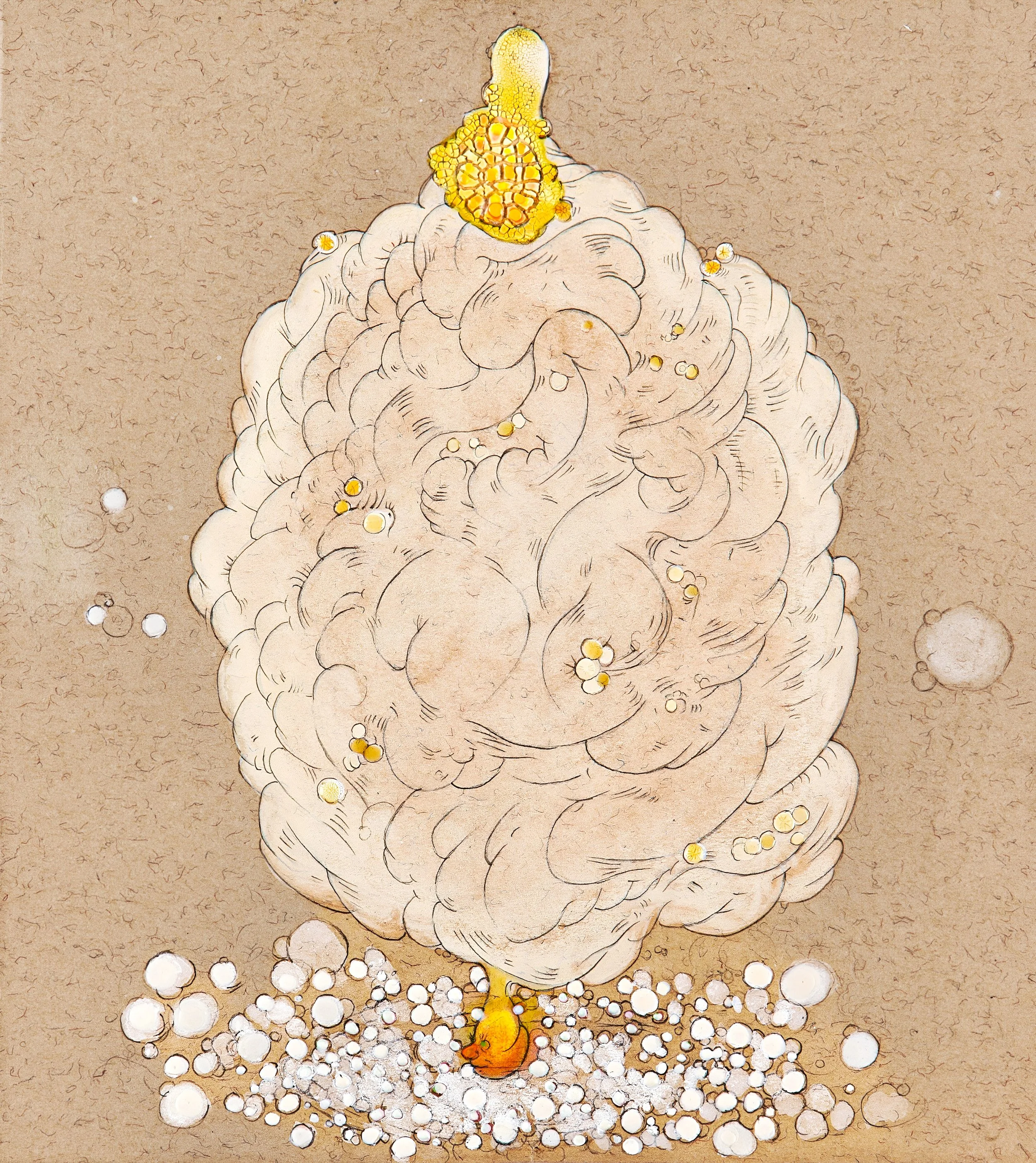 ingens cerebrum flavo cum parva pila rubra sacci, watercolor with Kremer pigments on recycled paper