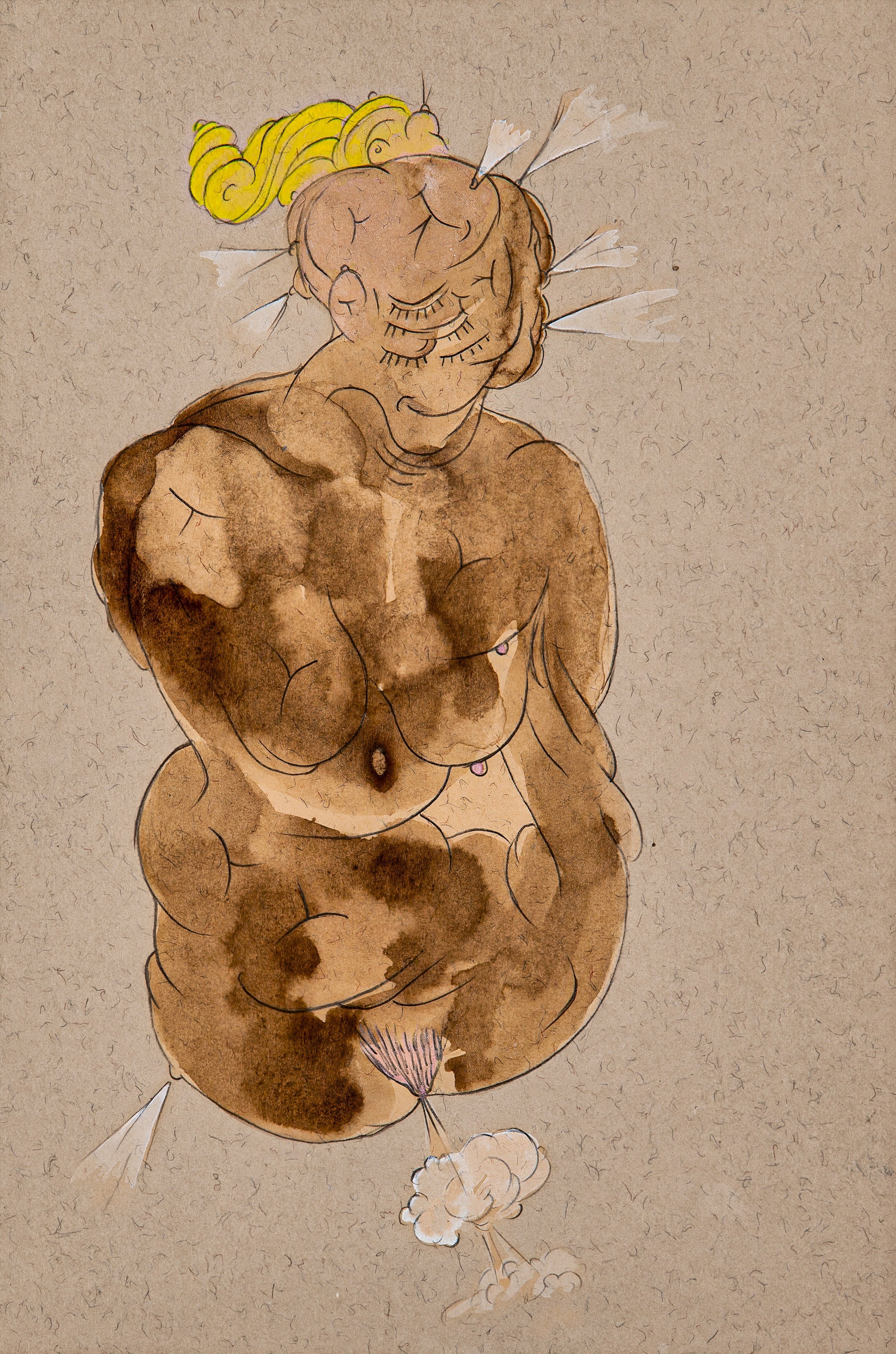 Brown Pink and Blonde, watercolor with Kremer pigments on recycled paper