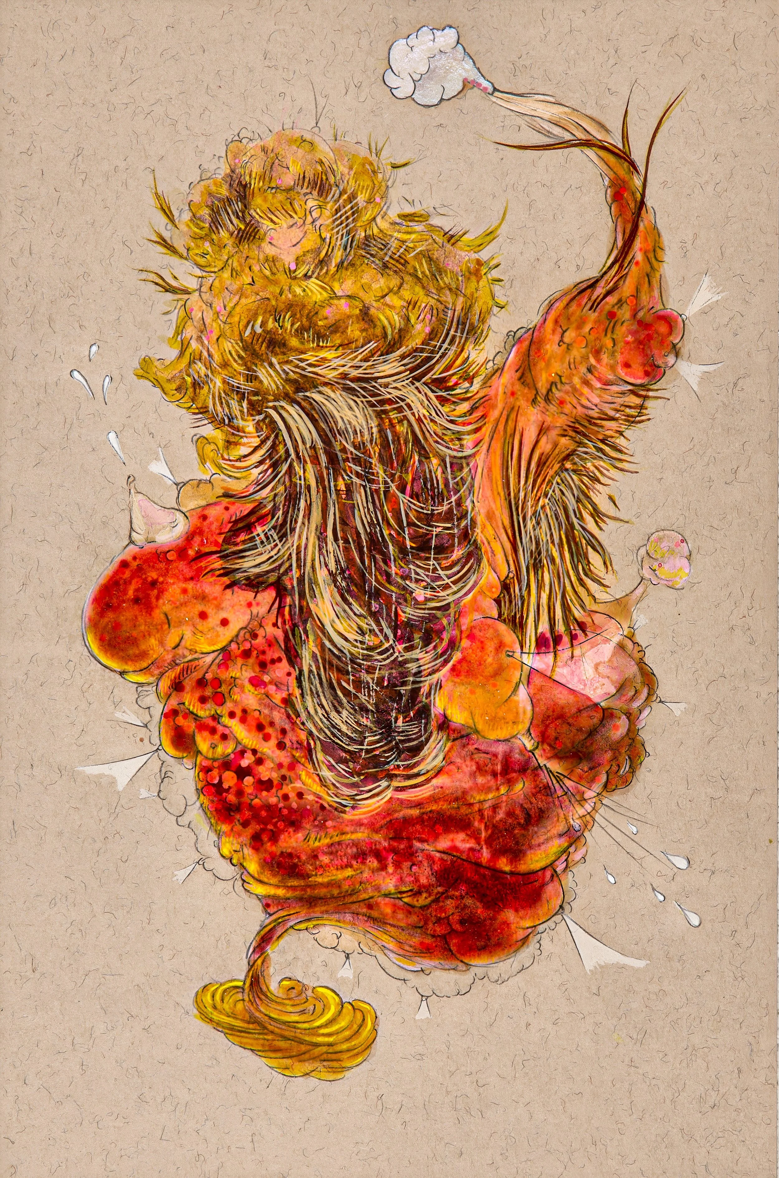 Ariana's seven tails, watercolor with Kremer pigments on recycled paper