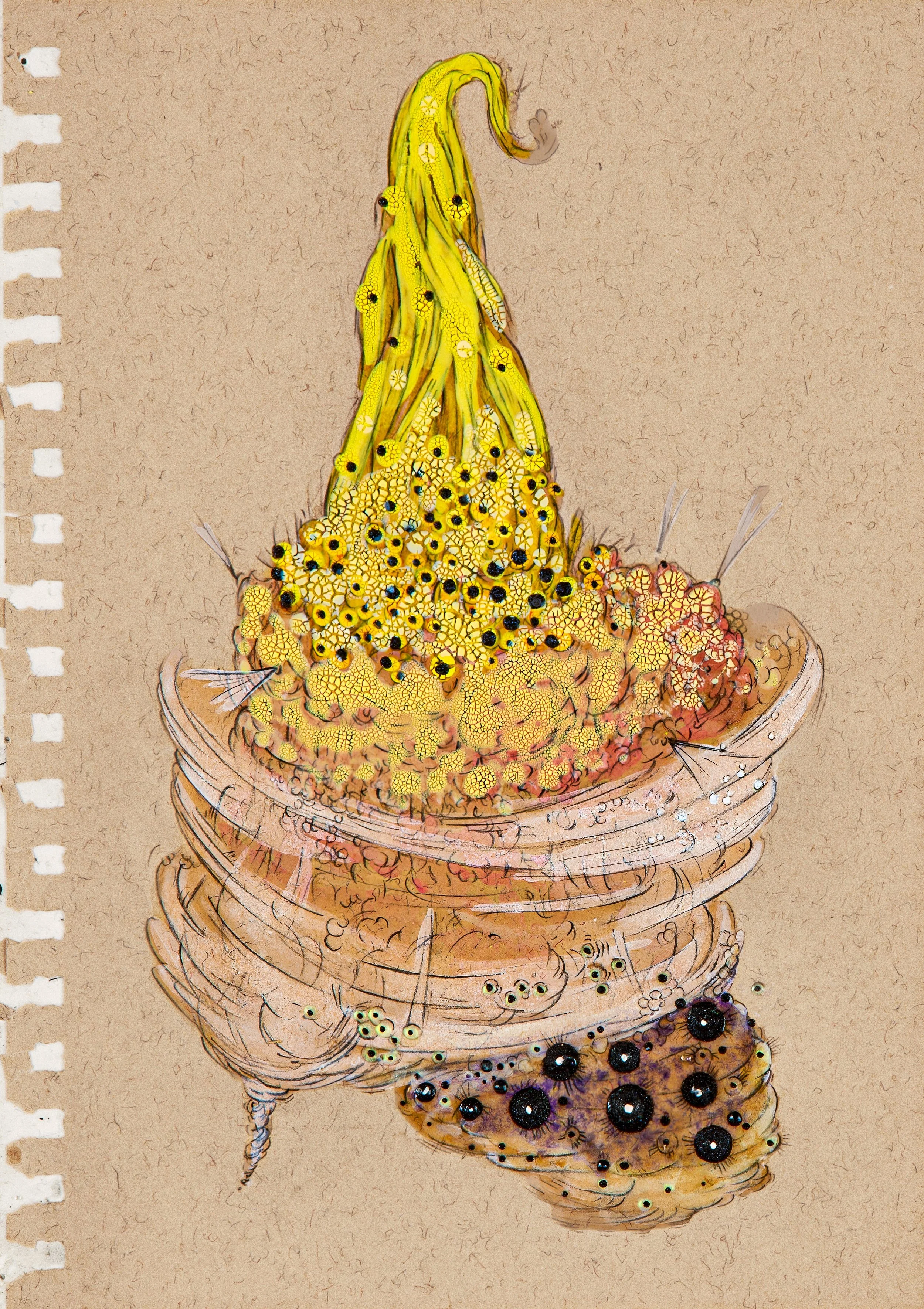 tubercule argente, watercolor with Kremer pigments on recycled paper